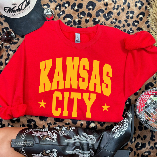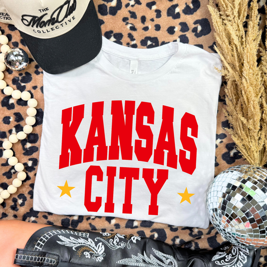 KC Varsity Puff Tee – Black with Metallic Gold Outline