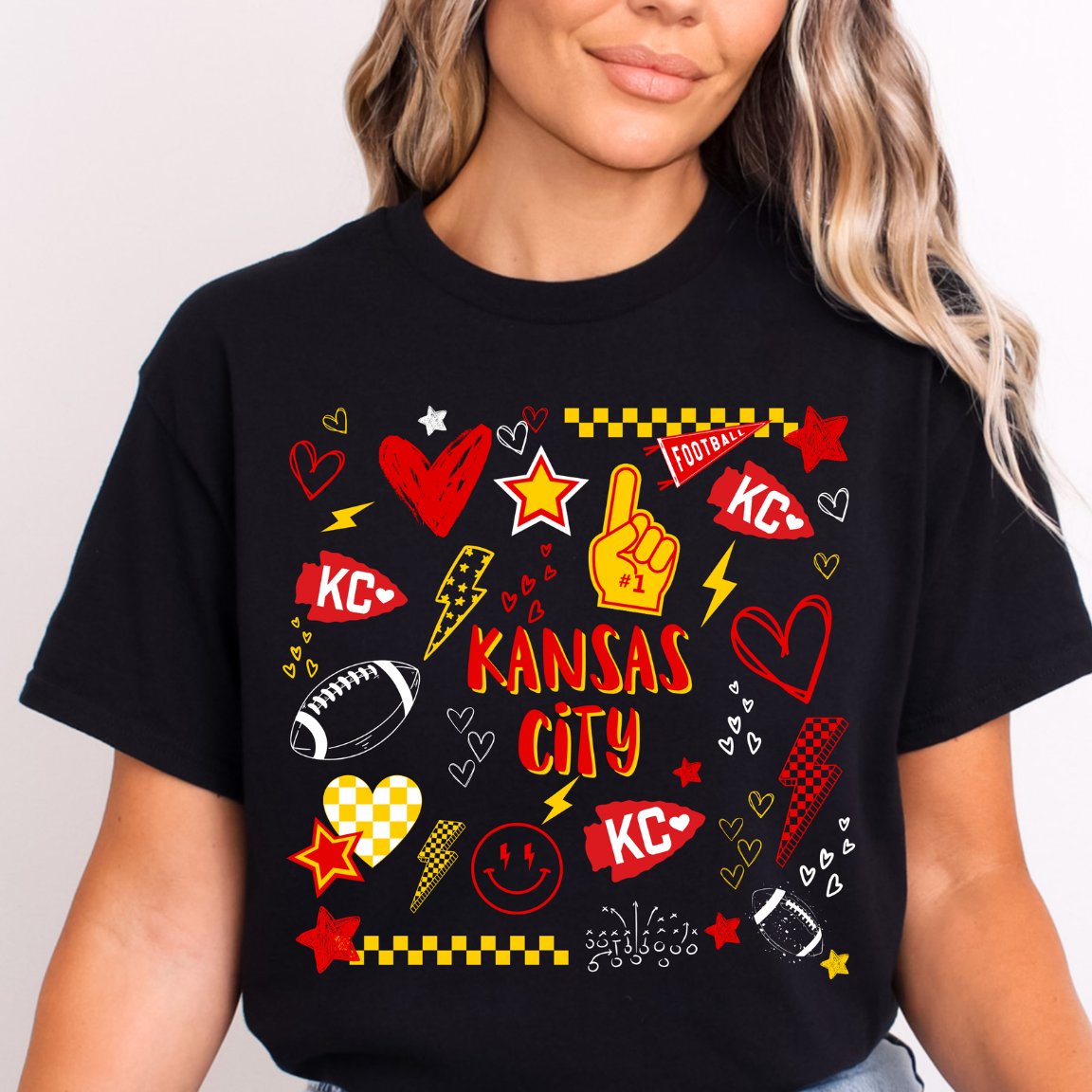 Bring a modern preppy vibe to your game-day look with the Kansas City Preppy Collage T-Shirt. Featuring a bold collage-style graphic on a sleek black base, this tee is designed for fans who want both comfort and standout style. Perfect for casual wear, tailgates, or cheering on your team.