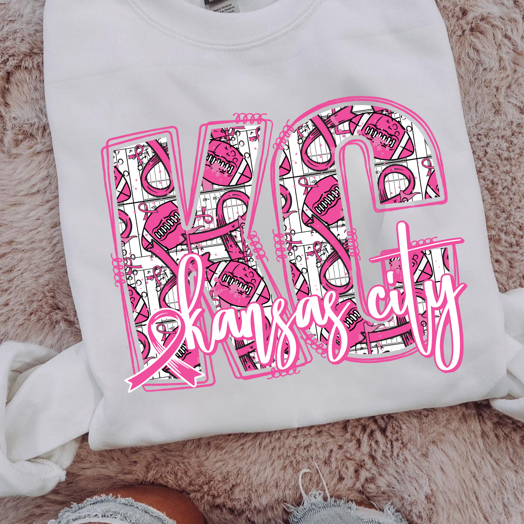 - Pink ribbon and football-inspired KC graphic for awareness support