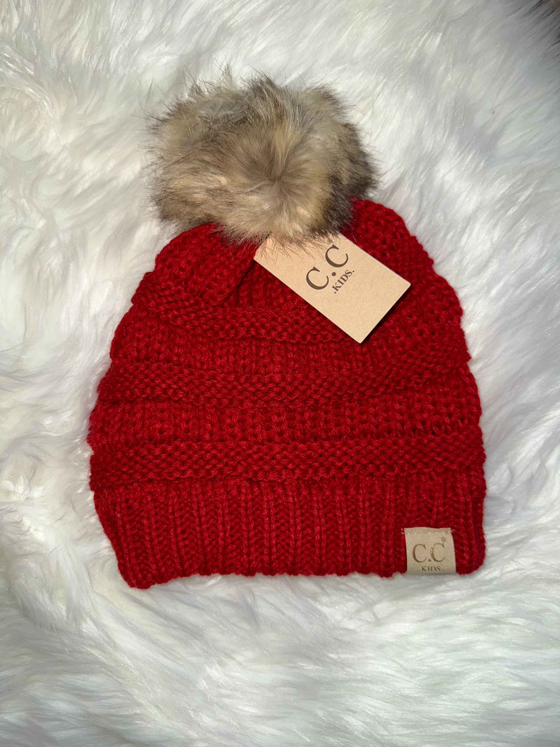 Kids Fur Pom Beanie