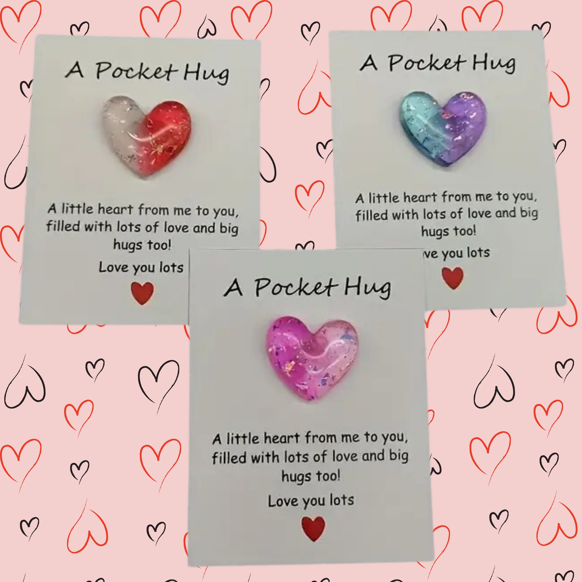 Share love and comfort with this charming Pocket Hug. Perfect for reminding someone special that they are always in your thoughts, these pocket-sized tokens feature a beautifully designed resin heart attached to a thoughtful message card. Ideal for long-distance relationships, thoughtful gifts, or as a sweet surprise for loved ones.