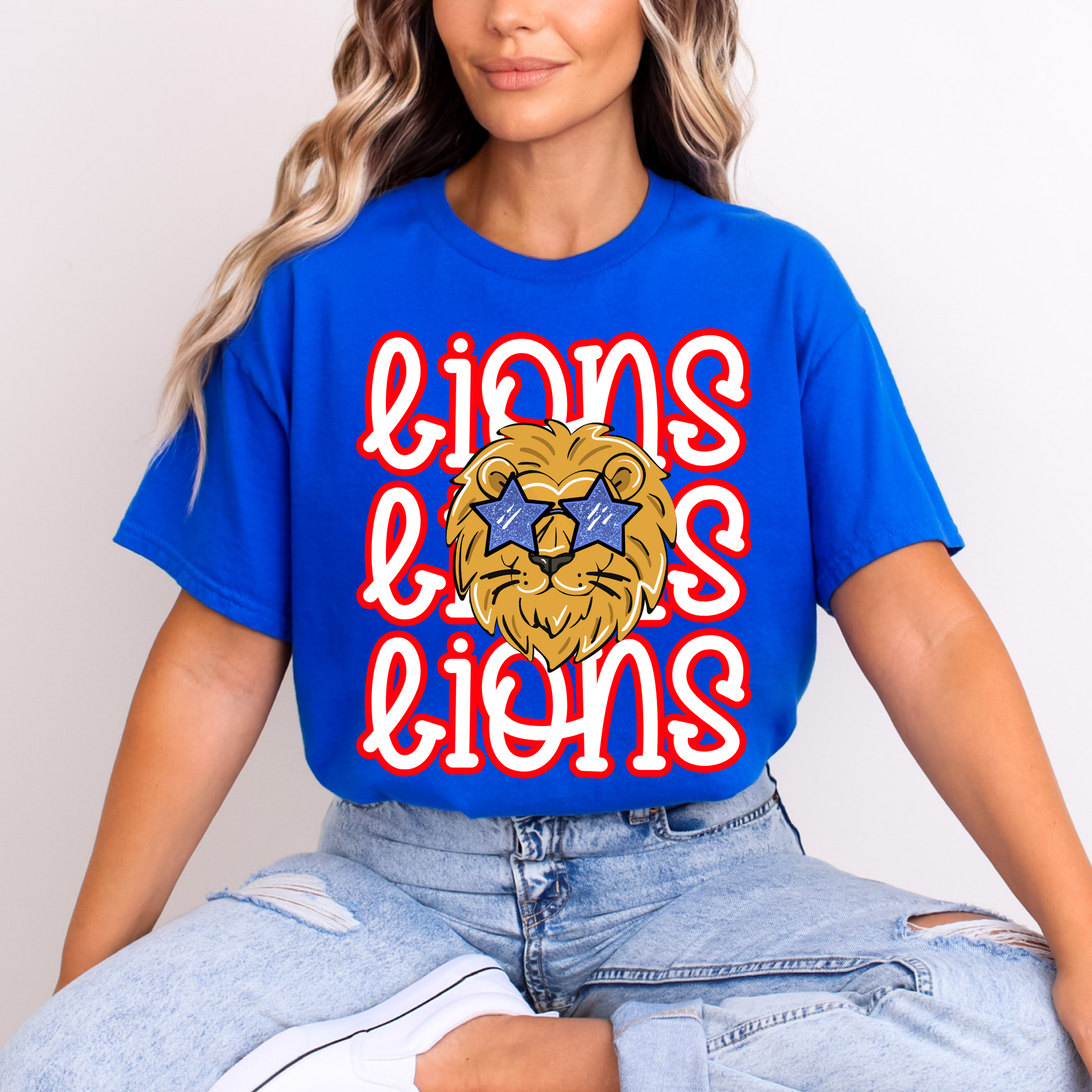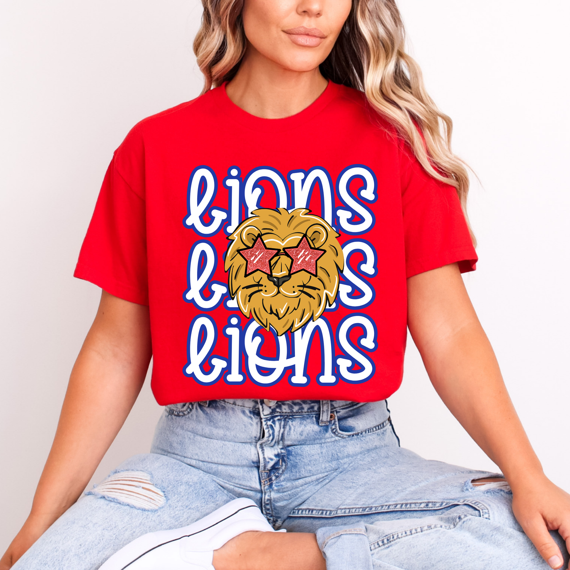 Get young fans game-day ready with the Youth Lions Repeat Mascot Star Eyes collection. Featuring a bold repeating Lions mascot graphic with fun star-eye detail, this design is the perfect way for kids to show off their Lions pride. Available in T-shirt, hoodie, sweatshirt, and long sleeve styles in Red or Blue.