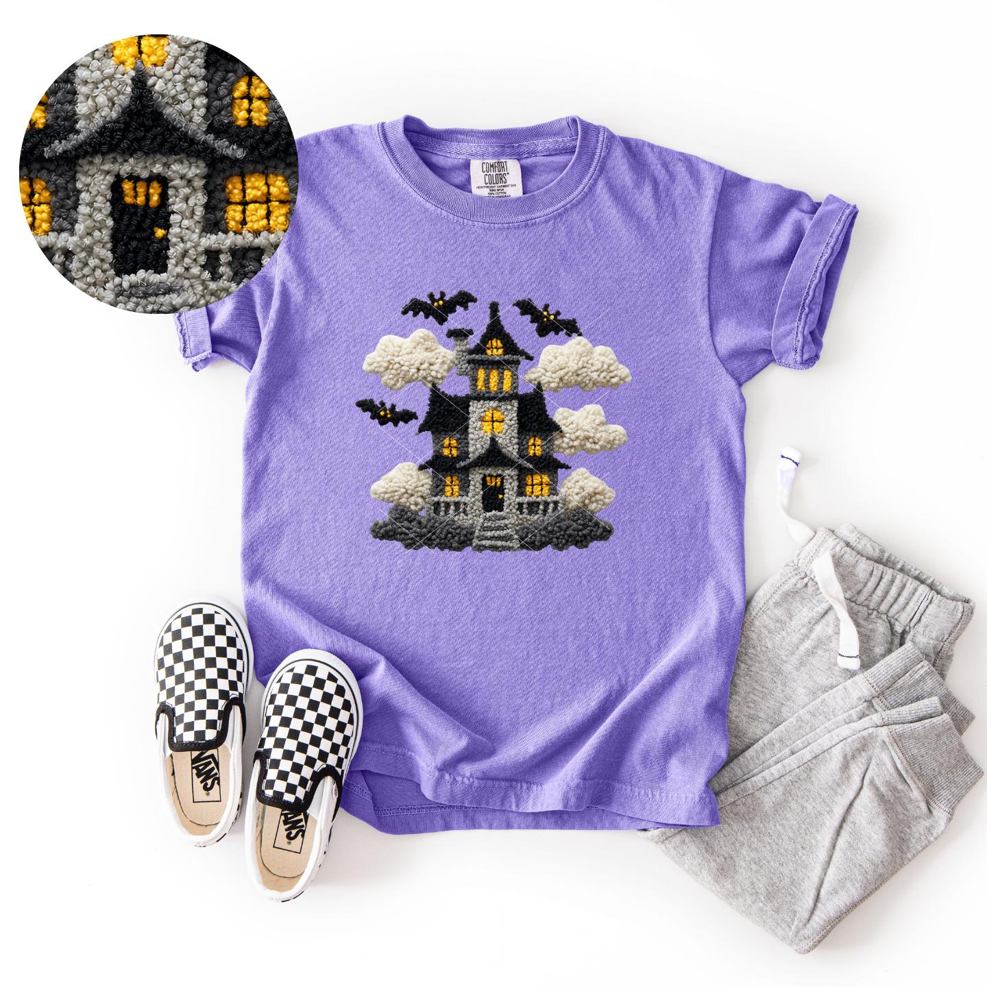 Add a playful twist to your child’s wardrobe with the Youth Yarn Haunted House Comfort Colors T-Shirt Hoodie in Melon & Violet. Featuring a bold haunted house design, this hoodie tee blends comfort and creativity. The soft-washed fabric and relaxed fit make it perfect for everyday wear, offering just the right mix of cozy and cool.